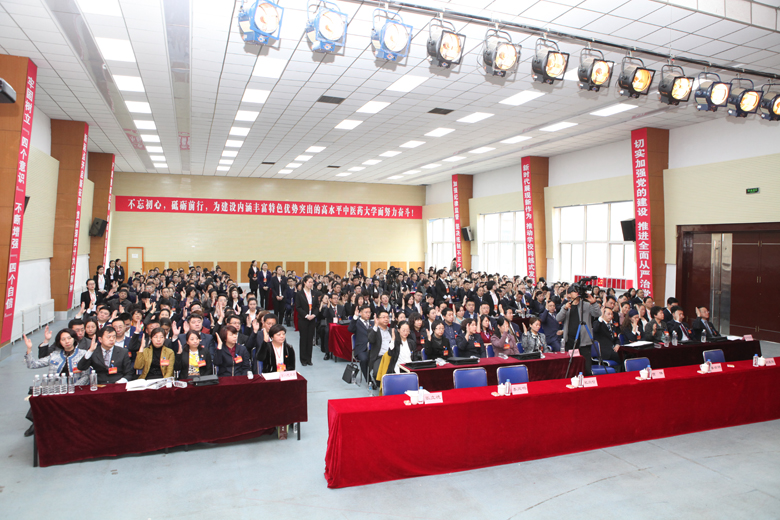 曾庆捷在报告中深入分析了学校发展面临的机遇和挑战。明确了今后五年学校发展的指导思想、奋斗目标,提出了八项主要任务。一是全面实施绩效改革,提升教学科研水平;二是深化供给侧结构性改革,提高教育教学质量;三是加强引导和管理,提高科研创新和服务社会能力;四是加强学科建设,进一步增强学科竞争力;五是加大引进和培养力度,提高人才队伍建设水平;六是加快对外交流合作步伐,提升学校事业的国际化水平;七是承载和肩负医改使命,建立健全大健康服务体系;八是优化办学条件,提高服务保障水平。