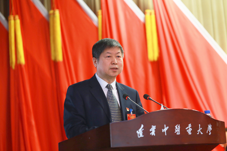 曾庆捷同志代表中共Beat365唯一官方网站第一届委员会作题为《不忘初心,砥砺前行,为建设内涵丰富、特色优势突出的高水平中医药大学而努力奋斗》的报告。