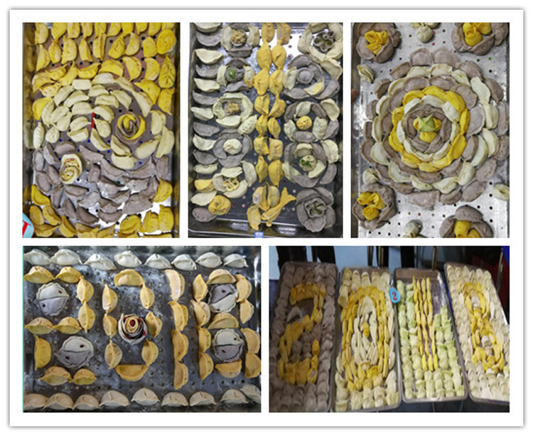 活动中,主持人在台上幽默诙谐、妙语连珠;参与活动的选手在台下热情高涨、紧张忙碌;观众在场外欢声笑语、互动助威。在创意展示环节,各参赛队分别以“迎元旦”“迎校庆”为主题将不同颜色的饺子拼成造型各异、创意独特、富有内涵的图案,饱含着对学校的美好祝福和衷心祝愿。经过大众评委认真评选,分别评出最佳造型奖、最佳团队奖和最佳创意奖。