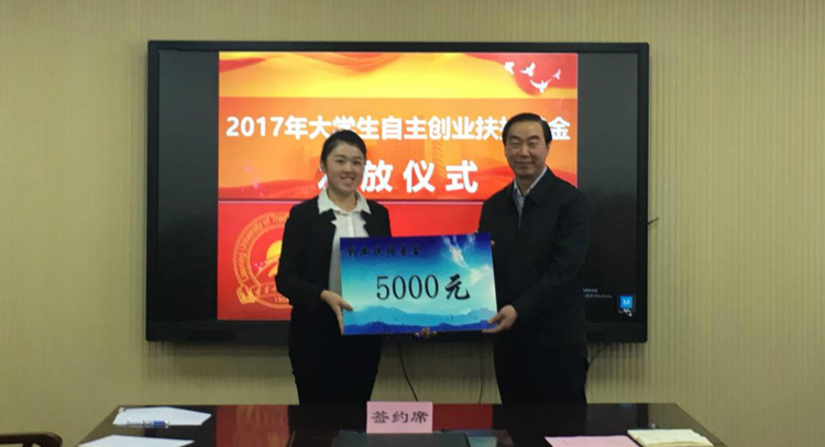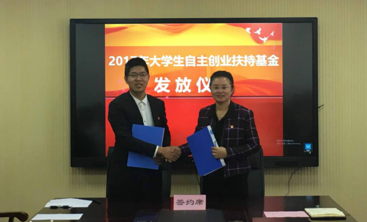 吕晓东宣读了Beat365唯一官方网站《关于发放2017年大学生自主创业扶持基金的决定》,与创业项目负责人签订入驻孵化协议书。杨关林为成功注册公司并运营的九个创业项目发放创业扶持基金,每个项目五千元。