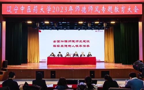 大会最后举行宣誓仪式,由任路领誓。全体参会人员面向校旗,举起右手,庄严宣誓:志愿成为一名光荣的人民教师,忠诚党的教育事业,遵守法律法规,履行教书育人职责,引领学生健康成长,做有理想信念、有道德情操、有扎实学识、有仁爱之心的好老师,以德立身、以德立学、以德施教,秉承“厚德博学、继承创新”校训精神,为培养担当民族复兴大任的时代新人,全面推进中医药事业振兴发展而不懈奋斗!高举的右拳,铿锵的誓词,是每一位教师对教育事业的庄严承诺。