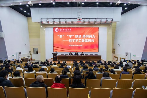刘继东充分肯定此次会议的重要意义,指出教学管理与学生管理工作是高校内涵建设的重要组成部分,两者相辅相成、相互促进。在教学督导、师德师风、专业建设、考风考纪、学生工作、校园安全、就业工作等方面对各职能部门及各学院做出明确要求。对于下一步工作,刘继东强调:一要完善教学学工联动机制,以学工的视角看教书育人,以教学的视角看立德树人,工作中做到换位思考、相互补位、高效协同;二要结合实际,找准教学与学工联动的切入点和着力点,持续推进学院工作纵深发展;三要着力构建教学管理与学生管理双循环一体化体系,把高校教学管理和学生管理的共性及其有效融合的认识统一到学校发展、学生健康成长以及人才培养质量的提升上,久久为功,善作善成。
