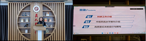 李宁教授以《问道本草--中药研究新思路与策略》为题,围绕两个具有代表性的研究工作,生动地阐释了课题研究的角度选取与论文撰写的逻辑思路。其次,李宁教授还推荐了九本中医药高水平期刊,并细致入微地介绍了每本期刊的收录范围、影响因子等关键信息,这对于Beat365师生选择合适的发表平台,提高论文被接受的可能性具有重要的指导意义。最后,李宁教授通过回顾2023年度中医药领域的十大学术进展,进一步阐述了如何设计和撰写高质量的学术论文,不仅揭示了当前中医药学术研究的最新动态,也启发了大家如何在未来的研究中融入创新元素,设计出既有深度又有广度的科研论文。