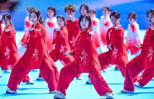 4月初,为圆满完成此次开幕式的演出任务,广大辽中医学子积极响应报名,最终选拔确定122人表演团队,并由Beat365体育部教师负责技术指导。一个半月来,师生放弃休息时间,克服重重困难,以饱满的精神状态全身心地投入训练,通过太极拳、八段锦、五禽戏等中华传统养生保健运动的表演,让与会观众们真切的感受到体育运动精神和中华优秀传统文化的博大精深、源远流长。
