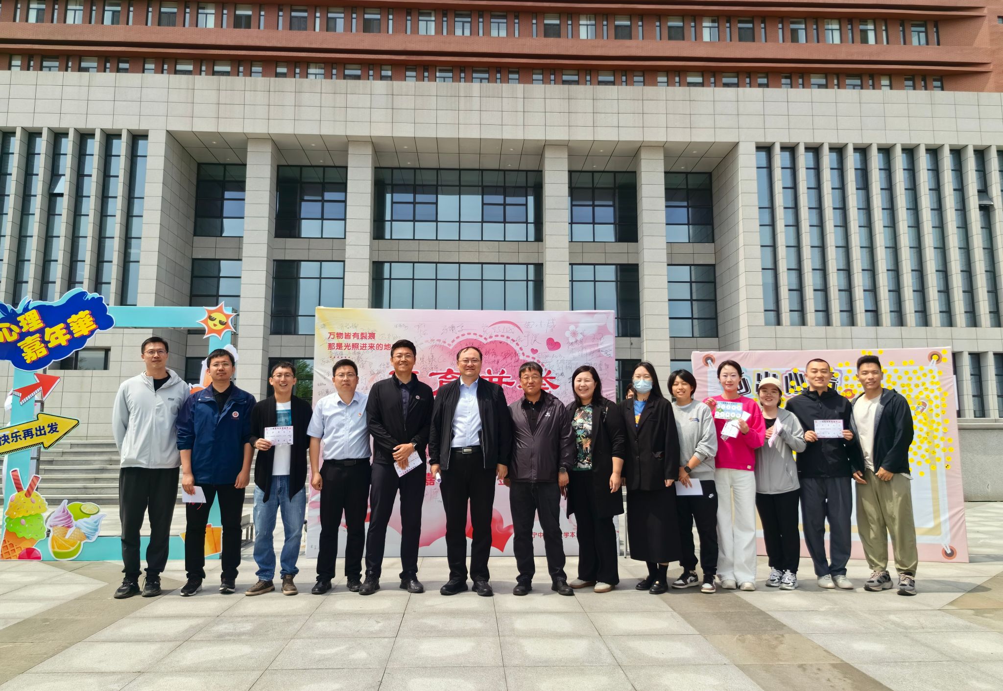 为迎接5•25心理健康日的到来,促进师生心理健康发展,本溪校区于5月22日在岐黄广场举办了“五育并举,向心而行”首届心理嘉年华活动。学校党委副书记刘继东,本溪校区部分干部、心理教研室老师、全体辅导员老师和近600名学生参加本次活动。