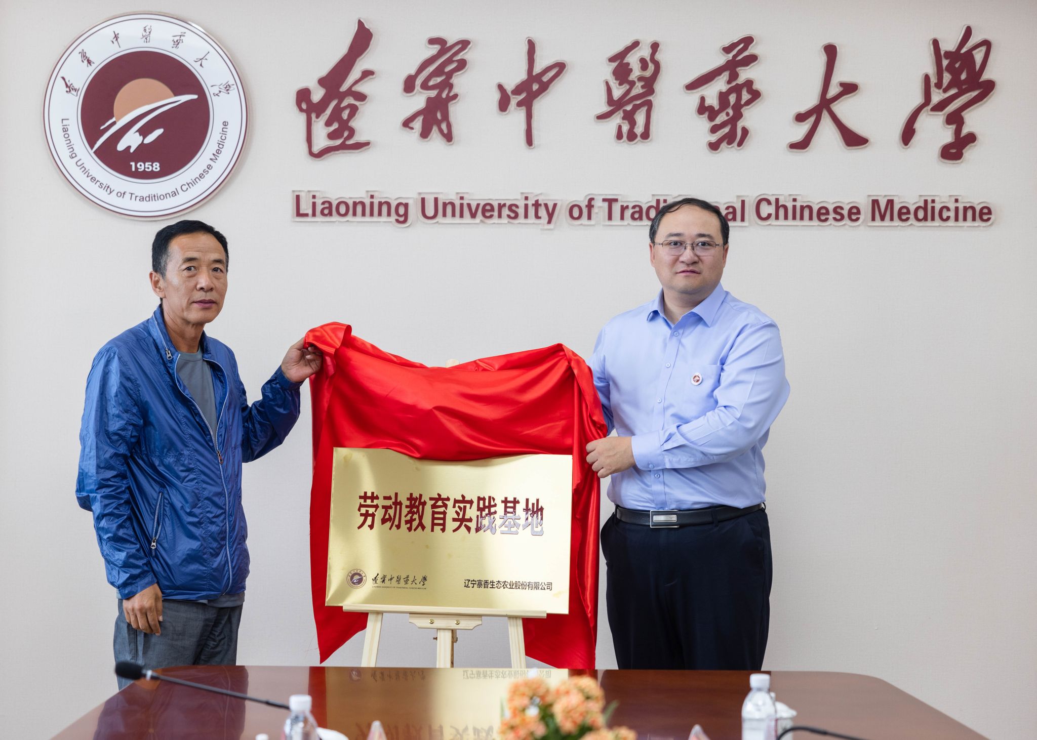 学校党委副书记刘继东,辽宁寨香生态农业股份有限公司董事长卢丙轩为“劳动教育实践基地”揭牌