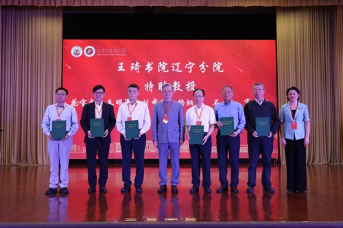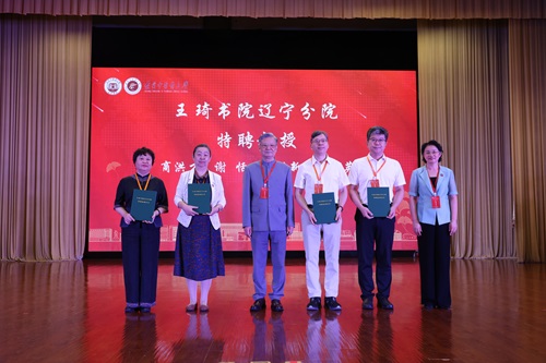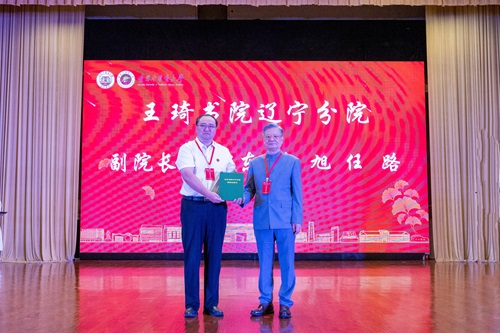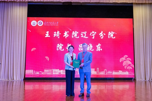 王琦与吕晓东为辽宁分院特聘教授颁发聘书。