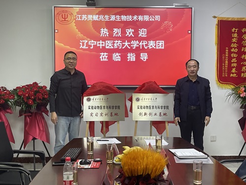 11月19日上午,实验动物医学与科学学院前往江苏灵赋兆生源生物技术有限公司举行校企合作揭牌仪式。学院院长王春田和公司董事长臧旭代表双方共同为学院“实习实训基地”、“创新创业基地”揭牌。学院副院长周阳、吴运谱、教学实验中心副主任马贤德参加揭牌仪式。