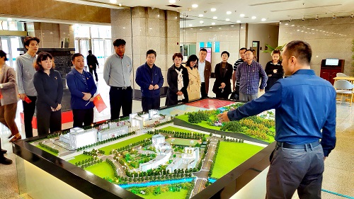 在图书馆一楼大厅,讲解员老师介绍了学校“一校三区”的整体沙盘,沙盘为等比例建造,详细讲解了本溪、大连校区的结构和布局,以及所承担的培养任务和发挥的功能作用。
