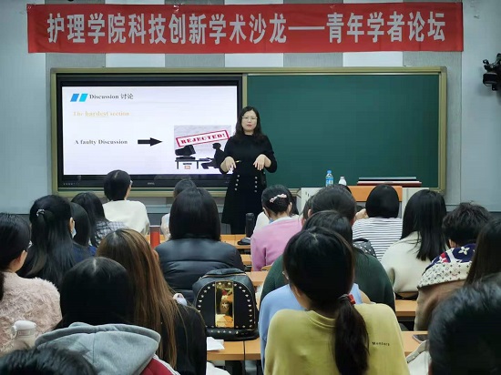 刘蕾博士结合审稿经历,通过大量论文实例详细讲解了中文论文撰写、SCI护理论文撰写的要点及注意事项;结合自身科研工作的心路历程,介绍了SCI护理论文投稿流程及方法,指出SCI论文撰写重在行动,要愈挫愈勇,在稿件被拒的过程中不断修正,终会离目标越来越近。她强调,开展护理科研要源于兴趣、勇于尝试、善于思考、吃苦耐劳。在座的教师及研究生认为讲座内容实用具体,受益匪浅,不光学到了专业知识,而且被名校护理学博士的学术精神所感染,增强了开展护理科研创新的信心与动力,并纷纷表示意犹未尽,对论坛接下来的活动充满期待。