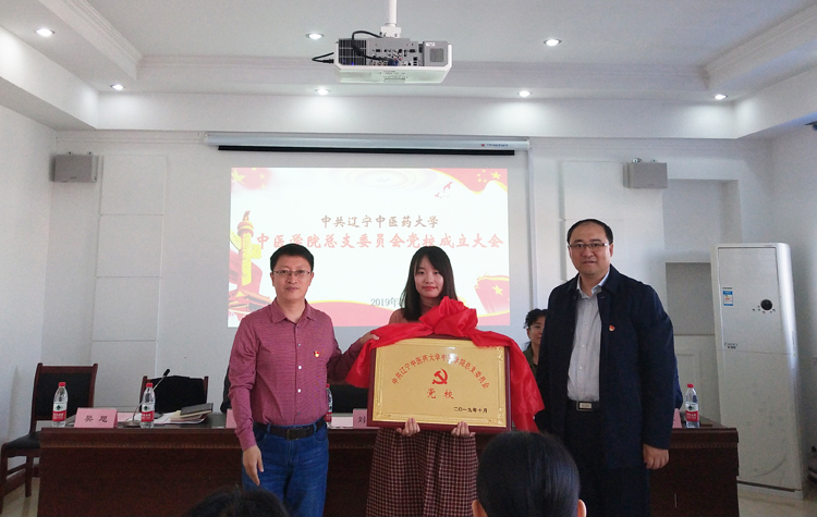 中医学院中医经典党支部书记曲道炜代表教工党员发言,组织部部长刘继东同志与中医学院党总支书记樊旭同志共同为党校揭牌。