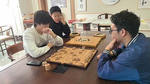 棋室里,围棋与象棋实践工作坊的学生们首先学习了“中炮开局”“屏风马”等象棋的布阵技巧,“顺炮”“列炮”等常见棋局的应对方法,同学们认真钻研、热烈讨论,随后进行分组切磋、大展棋技。