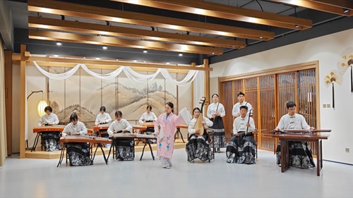 来自民乐与器乐实践工作坊的同学们通过古筝、二胡、琵琶等器乐,共同演奏了一曲《兰亭序》。