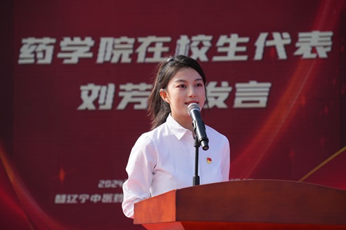 在校生代表刘芳彤在发言中表示,在美好的大学时光,药学院学子勤学善思,练就扎实本领;创新笃行,放飞传承中医药梦想;脚踏实地,实现人生华丽蜕变。未来,广大学子将继续秉承药学院的优良传统,以创新为翼,笃行致远,努力为实现中医药事业的繁荣发展贡献自己的力量。