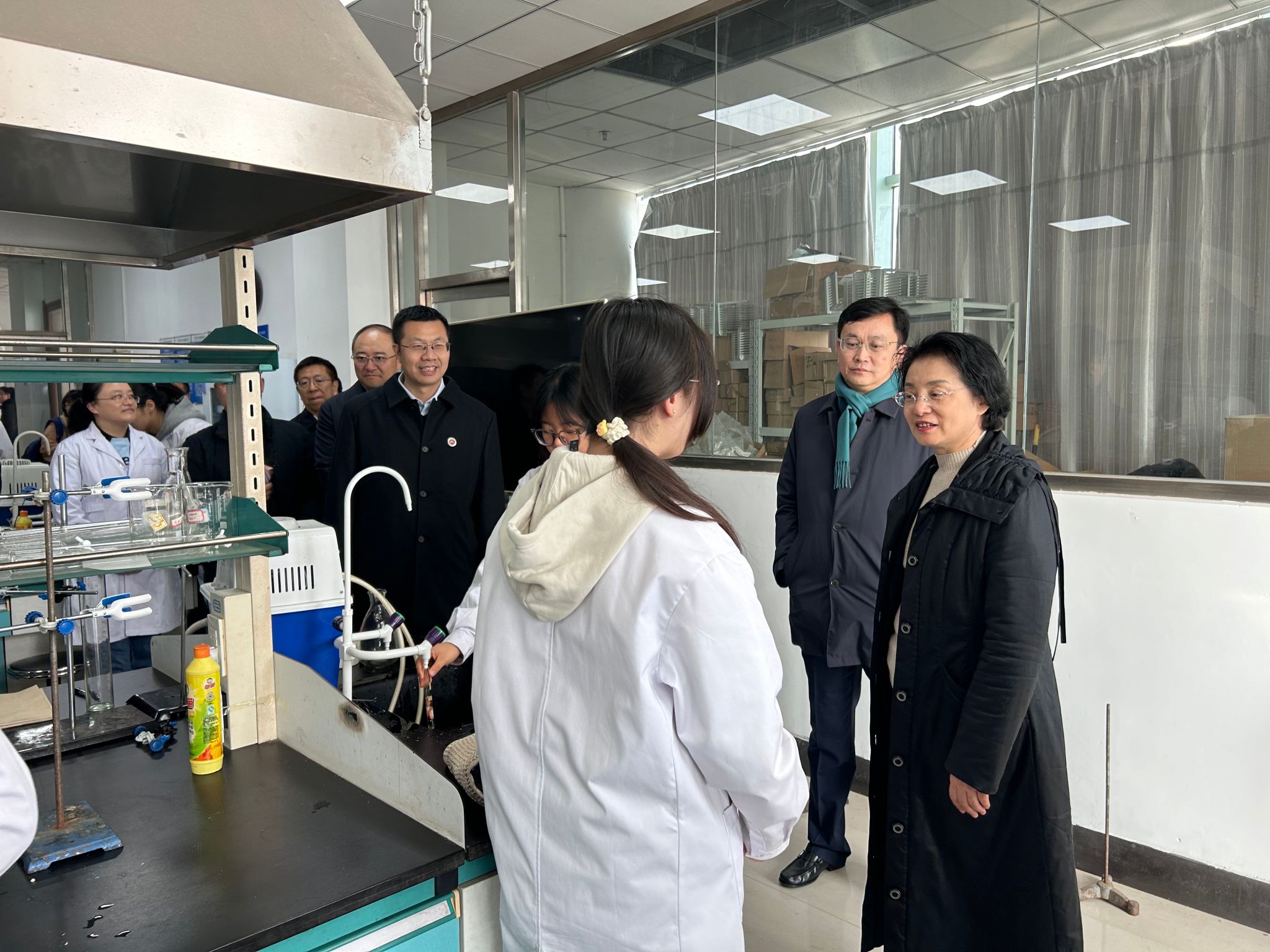 考察过程中,学校领导深入实验室和同学们亲切地交谈,关心同学们在校的生活状态、学习情况等。就教学运行情况、实验设计流程等细节与一线教师深入交流。