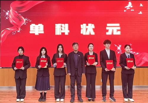 会上,张剑宣读表彰决议,共表彰37名单科状元,45名专业状元及2个优秀学风班集体。刘继东、李睿、孙江波分别为优秀学风班集体、专业状元和单科状元颁奖。随后,2024级中医学(“5+3”一体化)闵程豪同学作为获奖学生代表发言,他在发言中表达了作为新时代中医文化的学习者、传承者、发展者要在追求卓越的路上,以信念为舵,以实干为桨,以本草之志扎根沃土,以针砭之锐砥砺前行,在时代的浪潮中勇毅前行。