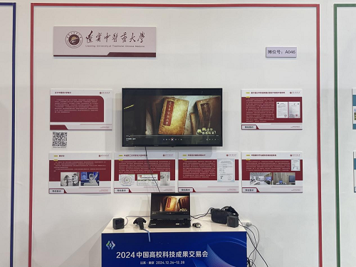 学校积极参加2024中国高校科技成果交易会,并提前遴选报送优质科技成果参展,中医眼针疗法虚拟仿真实验系统、中医舌诊辅助诊断APP、眼诊仪、基于组分中药创新模式的射干新药开发研究和中成药二次开发与大品种培育五个项目均入选参展。