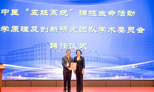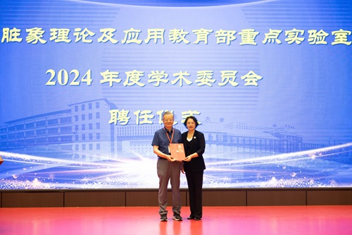 吕晓东为王琦颁发中医脏象理论及应用教育部重点实验室/心脑合病中西医结合防治技术国家地方联合工程实验室学术委员会主任聘书。