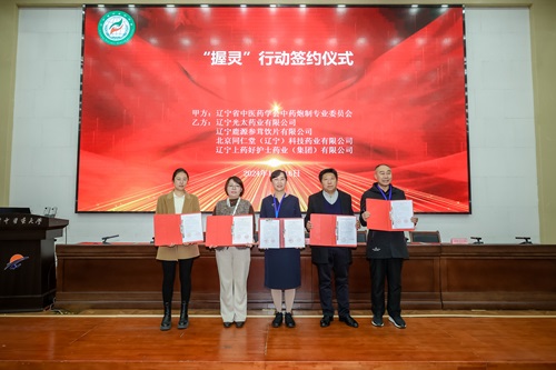 会上举行了“握灵”行动签约仪式。专委会副秘书长张凡介绍了“握灵”行动的由来,并宣读合作计划。“握灵”行动是贾天柱老师在2024年全国中药炮制分会学术年会上提出的,为实现饮片产业的高质量发展,加强“产学研”合作,取自《握灵本草》,亦有握手即灵之意。辽宁省中药炮制专委会在全国率先开展此活动。高慧与辽宁光太药业有限公司、辽宁鹿源参茸饮片有限公司、北京同仁堂(辽宁)科技药业有限公司及辽宁上药好护士药业(集团)有限公司代表进行签约。