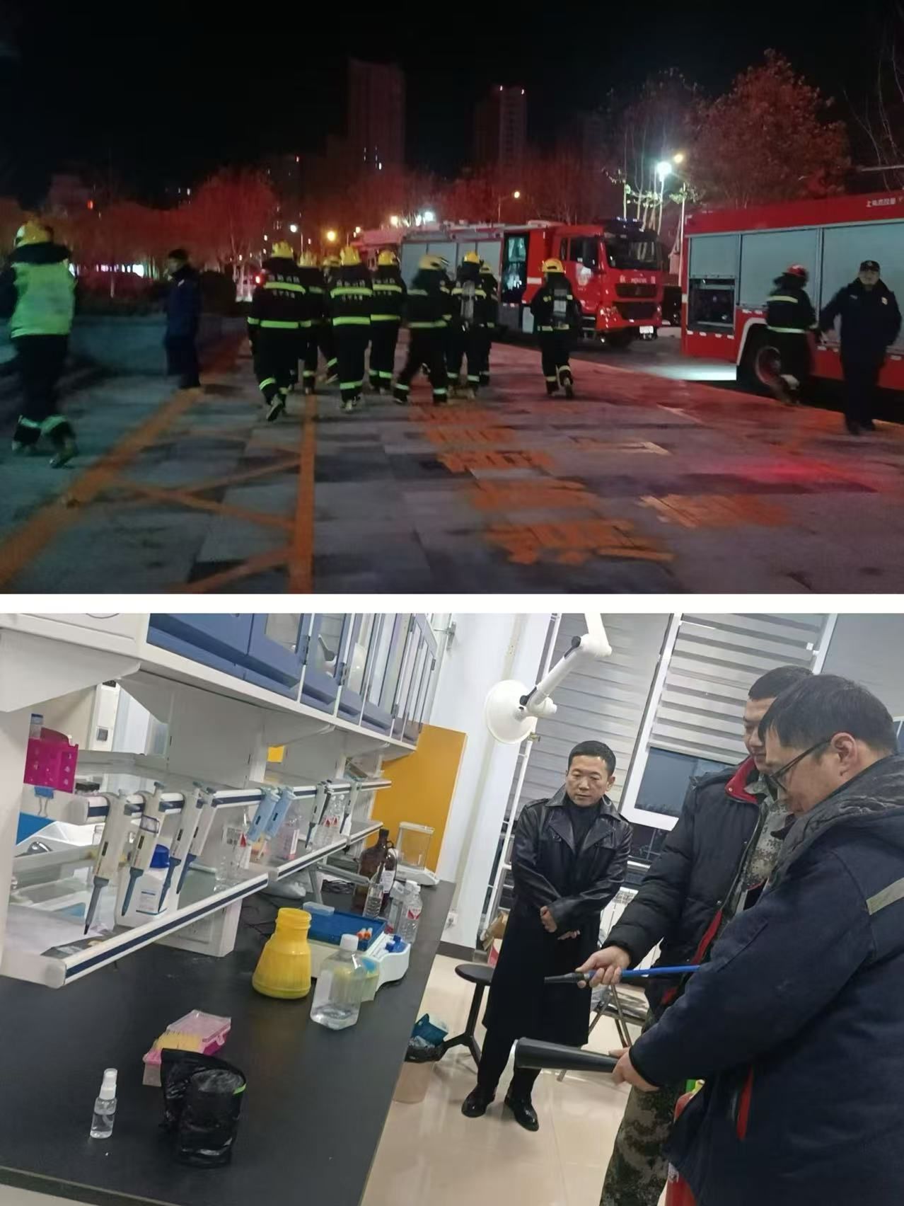 消防大队首先对校园建筑结构、消防设施以及重点区域进行了检查。李岩对校区内消防器材的配置情况、校区内部和周边的疏散通道情况进行了介绍。实验室是高校的重点防火区域之一,在实验室,消防员向师生们演示了灭火器的正确操作方法,讲解了火灾发生时的逃生技巧。通过学习和实践,师生们掌握了灭火器的规范操作流程,提升了防范意识和逃生能力。