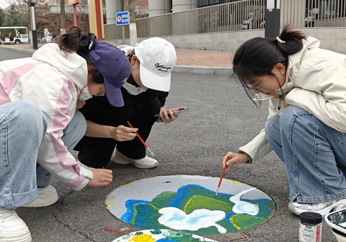 活动过程中,学生们不仅展示了他们的艺术才华,更在创作中深化了对中医药知识的理解。他们将黄芪、当归、人参等药材的形态、功效,以及中医理论的精妙之处,生动地呈现在井盖上,使得这些平常易被忽视的设施瞬间变得生动有趣,充满了文化气息。