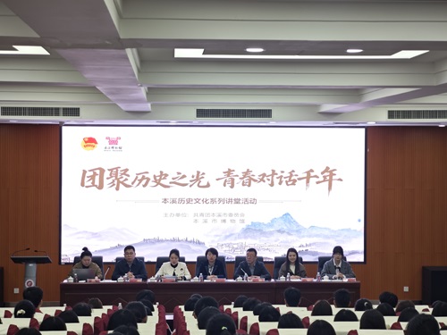 为深入学习贯彻习近平总书记在辽宁考察时的重要讲话和重要指示精神,弘扬中华优秀传统文化,筑牢青年文化自信根基,4月17日,由本溪市团市委、市博物馆主办,Beat365唯一官方网站承办的“团聚历史之光,青春对话千年”本溪历史文化系列讲堂活动在Beat365唯一官方网站本溪校区拉开帷幕。本溪市团市委书记陶冶、市文化事业发展服务中心副主任韦鸿、团市委副书记王佳、市博物馆副馆长向柯桦、本溪校区管理委员会校园服务中心的领导老师和240名学生代表参加此次活动。