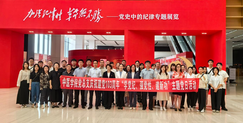 在热烈庆祝中国共产党成立103周年之际,为深入学习贯彻习近平总书记关于全面加强党的纪律建设的重要论述,推动党纪学习教育走深走实,7月4日,中医学院党总支组织全体教师党员、学生党员代表参观由省纪委监委机关、省委党史研究室、省档案馆联合主办的“加强纪律性 革命无不胜——党史中的纪律”专题展览,暨开展“学党纪、强党性、建新功”主题党日活动。