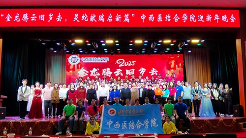 11月27日下午,中西医结合学院2025年“金龙腾云旧岁去,灵蛇献瑞启新篇”迎新年晚会在大学生活动中心举办。中西医结合学院领导班子、全体老师及学生代表600余人观看晚会。