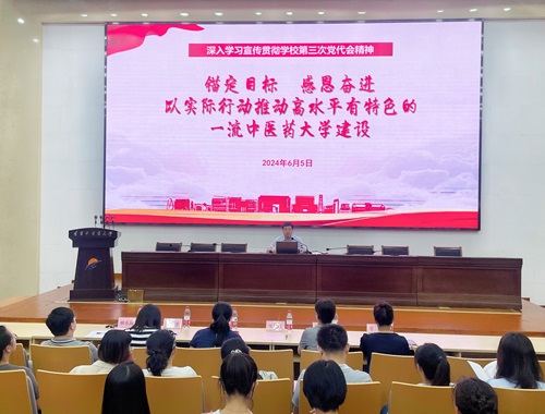 随后凌常清以《锚定目标,感恩奋进,以实际行动推动高水平有特色的一流中医药大学建设》为题作专题党课。他分别从“大会的基本情况”“第三次党代会报告的主要内容”“锚定目标、感恩奋进,以实际行动落实党代会精神”三个层面进行了详细讲解,重点讲解了学校今后五年工作的主要目标,他强调全校师生要锚定目标、接续奋斗,把学习贯彻学校第三次党代会精神与重点工作结合起来,增强答卷意识、保持赶考状态,为奋力推进高水平有特色的一流中医药大学建设贡献力量。