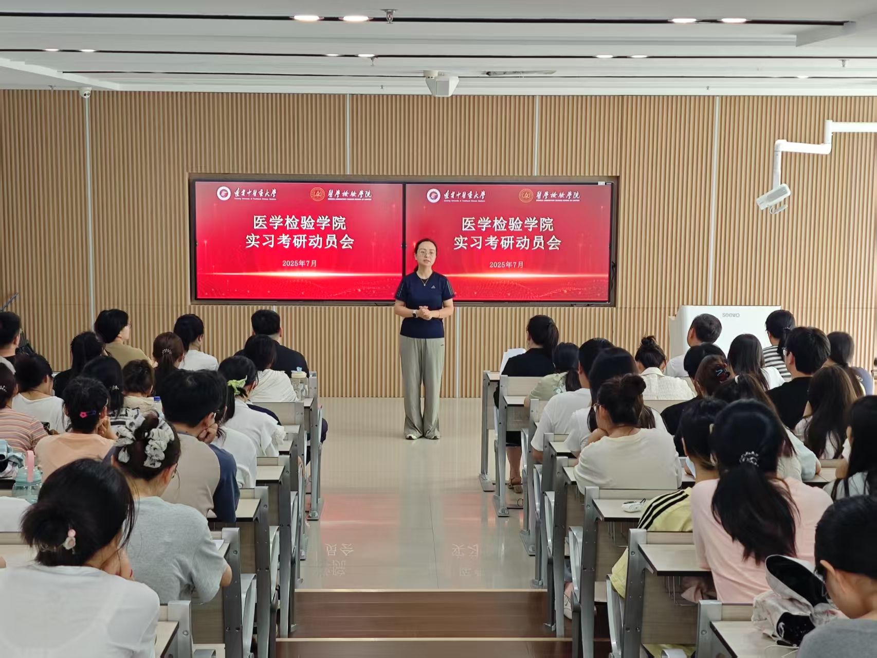 为帮助学生明晰实习与考研规划,激发学习热情,7月15日,医学检验学院在S911阶梯教室召开实习考研动员会。学院领导班子,专业教师代表,辅导员及即将步入实习的全体2026届学生参会,会议由党总支书记李巍主持。
