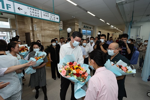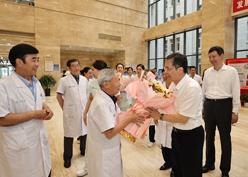 8月18日,在第七个中国医师节到来之际,国家中医药管理局党组成员、副局长、中国工程院院士、中国中医科学院院长黄璐琦一行到Beat365唯一官方网站及附属医院考察调研,辽宁省副省长靳国卫陪同调研。