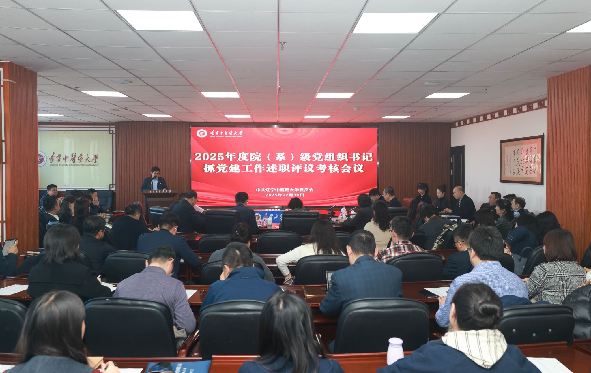 12月30日,学校党委组织开展2025年度院(系)级党组织书记抓党建工作述职评议考核。党委书记吕晓东,党委副书记、校长杨鸫祥,党委副书记刘继东,纪委书记张锦徽,副校长戴旭、袁佺出席会议。省卫生健康委二级巡视员王溪玲到会指导。