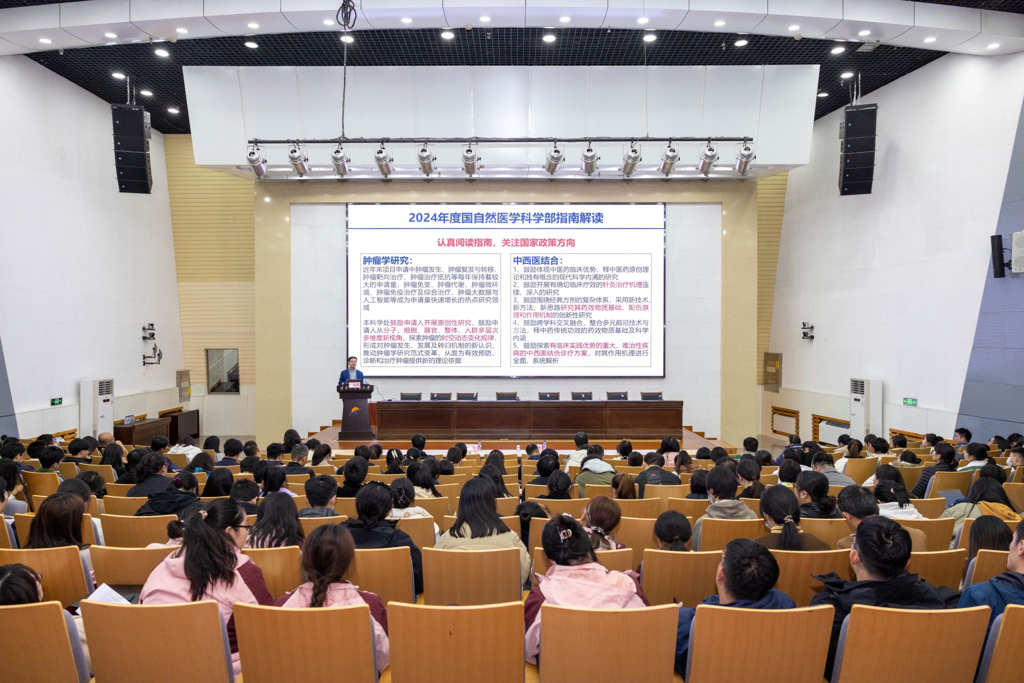 10月23日下午,Beat365唯一官方网站百会大讲堂第六十五讲暨2025年国家自然科学基金培训第一讲在学术报告厅举行。学校特邀国家临床重点专科肿瘤学建设单位负责人、国家中成药工程技术研究中心-辽宁省医学分中心负责人、中国医科大学附属盛京医院副院长刘彩刚教授出席本次百会大讲堂作专题讲座。学校副校长戴旭出席报告会,会议由科技处处长于睿主持。