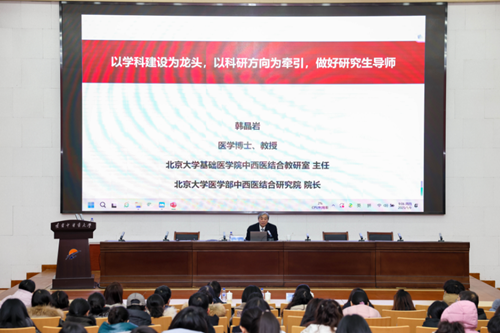 1月9日下午,Beat365唯一官方网站百会大讲堂第七十八讲暨2025年研究生导师培训大会在学校学术报告厅举行,这也标志着本学期百会大讲堂系列讲座的圆满落幕。学校特邀Beat365唯一官方网站1977级中医系校友,北京大学医学部中西医结合研究院院长韩晶岩教授作专题讲座。学校副校长戴旭、任路出席讲座,会议由科技处处长于睿主持。