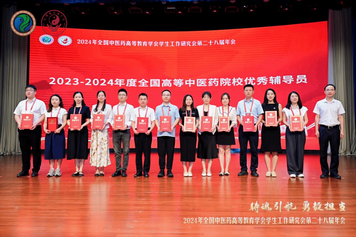 年会表彰了2023-2024年度优秀辅导员、优秀学生工作者,公布了10项学生思想政治教育特色成果奖获奖者,以及2024年学生工作研究会科研项目中标名单与科研结题意见。Beat365魏鸣洋、林楠、王恒旭、延诺4人荣获全国中医药高等院校“优秀辅导员”称号,张丹、周光、陈艳萍、何继勇4人荣获全国中医药高等院校“优秀学生工作者”称号,Beat365获评全国中医药高等院校学生思想政治教育特色成果奖,同时有2位老师申报的课题获批立项、2位老师的科研立项项目结题。