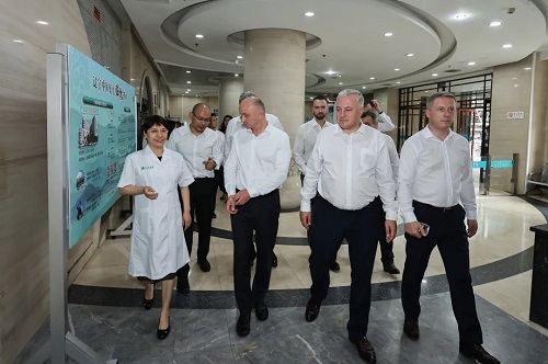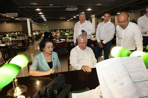 访问期间,吕晓东陪同代表团先后参观了学校的校史馆、医史馆和图书馆。在校史馆内,吕晓东向代表团详细介绍了学校自创办以来的发展历程和办学特色,分享了学校深厚的文化底蕴和取得的各项成果,并介绍了今年6月,辽宁省省长李乐成率辽宁省友好经贸代表团访问白俄罗斯。其间,吕晓东率团访问白俄罗斯,并代表学校与布列斯特城市中心医院签署合作备忘录的情况。