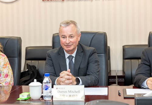 会见中,吕晓东与达伦·米切尔代表双方学校互赠礼品。