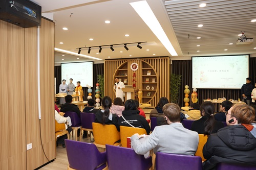 随后,代表团一行参观了学校图书馆,他们在这里欣赏了精彩的五禽戏表演,表演者们精湛的技艺赢得了代表团成员们的阵阵掌声。