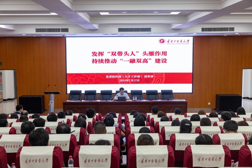 学校党委常委、组织部部长凌常清以《发挥“双带头人”党支部书记头雁作用,持续推动“一融双高”建设》为题,讲述了“一融双高”的内涵、“双带头人”教师党支部书记在“一融双高”建设中的重要价值,着力阐述了“双带头人”教师党支部书记如何在“一融双高”建设中发挥作用,鼓励教师党支部书记切实发挥“头雁效应”,为推动学校高质量发展作出新的更大贡献。