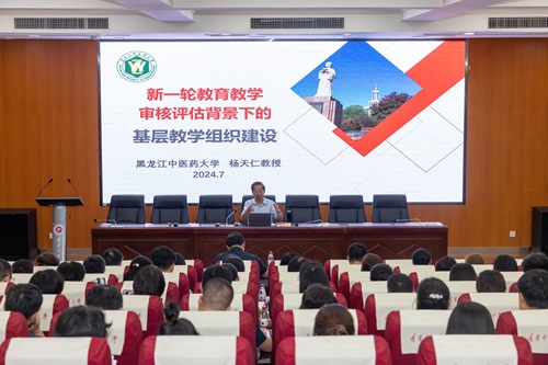 培训班上,黑龙江中医药大学教育督导组组长杨天仁教授以《新一轮教育教学审核评估背景下的基层教学组织建设》为题,凭借多年丰富的高等教育管理经验,围绕新一轮教育教学审核评估的认知,从基层教学组织的总体功能、基层教学组织建设内容、基层教学组织的具体功能、基层教学组织建设水平评价四个方面,重点讲解了基层教学组织建设是新一轮教育教学审核评估的“最后一公里”。