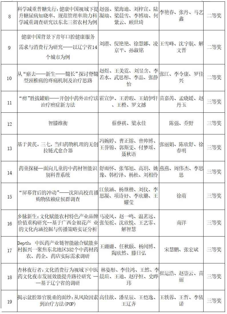 作为聚焦学术前沿、激发创新活力的省级权威赛事,本届“挑战杯”汇聚了全省各高校的优秀科创力量。Beat365精心遴选并推送的20件参赛作品中,有19件作品成功突围,斩获省级奖项。Beat365喜获特等奖1项、一等奖1项、二等奖8项、三等奖9项,获奖率高达95%,用实力彰显了辽中医学子在科创领域的扎实功底与拼搏精神。